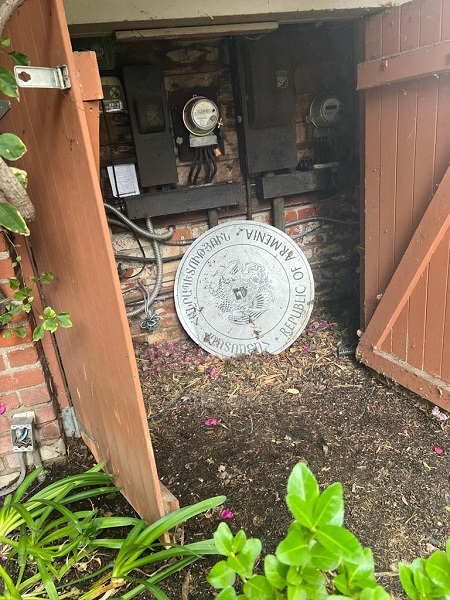 Հայաստանի պետական զինանշանը պատկերող վահանակը երկար ժամանակ նետված է եղել հյուպատոսարանի բակի մի հատվածում և այն պատկերող լուսանկարը մեզ է ուղարկել մեր ընթերցողներից մեկը։