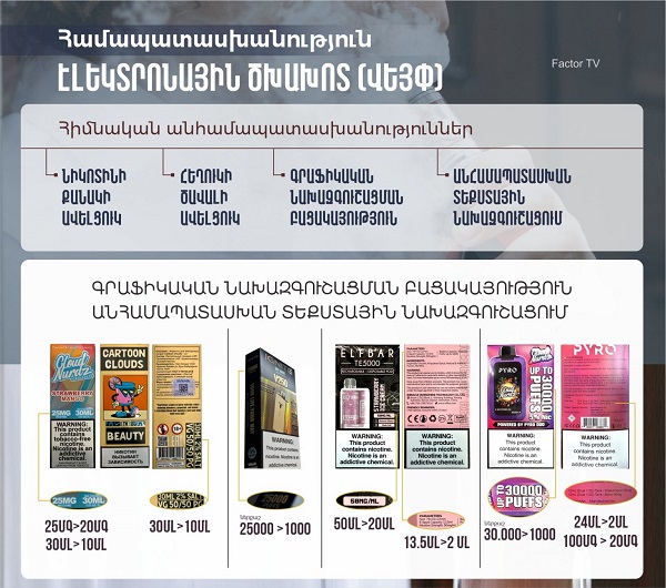 Խախտումները համատարած են հենց էլեկտրոնային ծխախոտների (վեյփ) շուկայում։