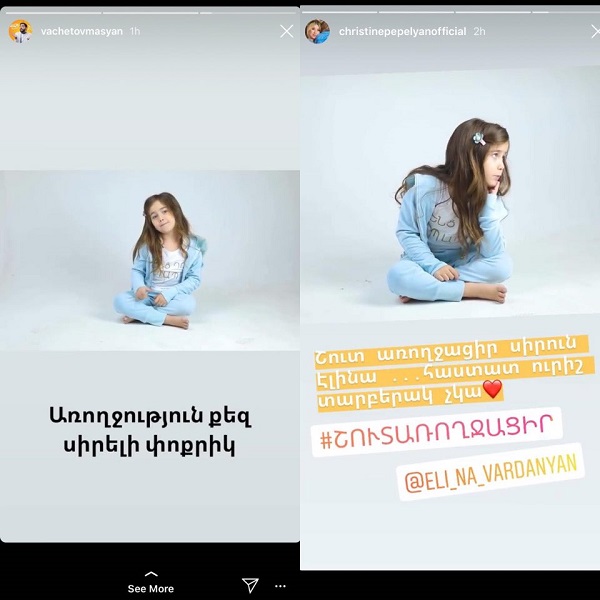 Հայ հայտնիներն համացանցում իրենց աջակցությունն են հայտնում ու առողջություն են մաղթում Արամ Վարդանյանի ( Վստրեչի Ապեր) թոռնուհուն՝ հինգամյա Էլինային։